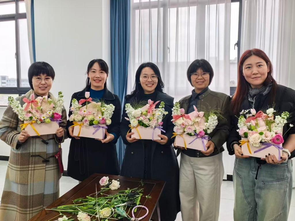 在市总工会组织的“携手绽芳华”健步走活动中,女教职工们积极参与,精神饱满地行走在城市绿道上,用脚步丈量春光,以笑声驱散疲惫。校内“春风拂槛繁花赠你”插花活动中,大家巧手搭配玫瑰、郁金香、洋桔梗等花材,将对生活的热爱融入创作,展现审美情趣、诠释“美好生活”。此外,工会成员还积极参与“呵护巾帼 赋能身心”健康讲座活动,讲座由纪委工会小组单园同志担任主讲,她充分发挥党员教师的专业优势,围绕‘心力养护’这一主题,将专业的心理学理论转化为生动的互动体验,带领大家在OH卡探索、呼吸减压等环节中,重新认识并赋能自我,帮助女教职工在繁忙工作之余舒缓压力、提升生活品质。